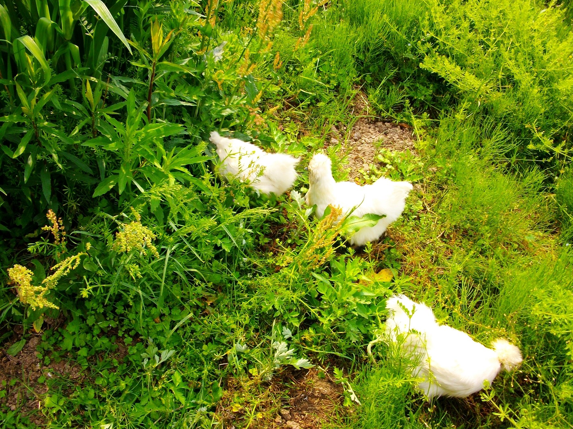 今日も、烏骨鶏さんたちは、いちじくの木の周りの草抜きに勤しんでおります。