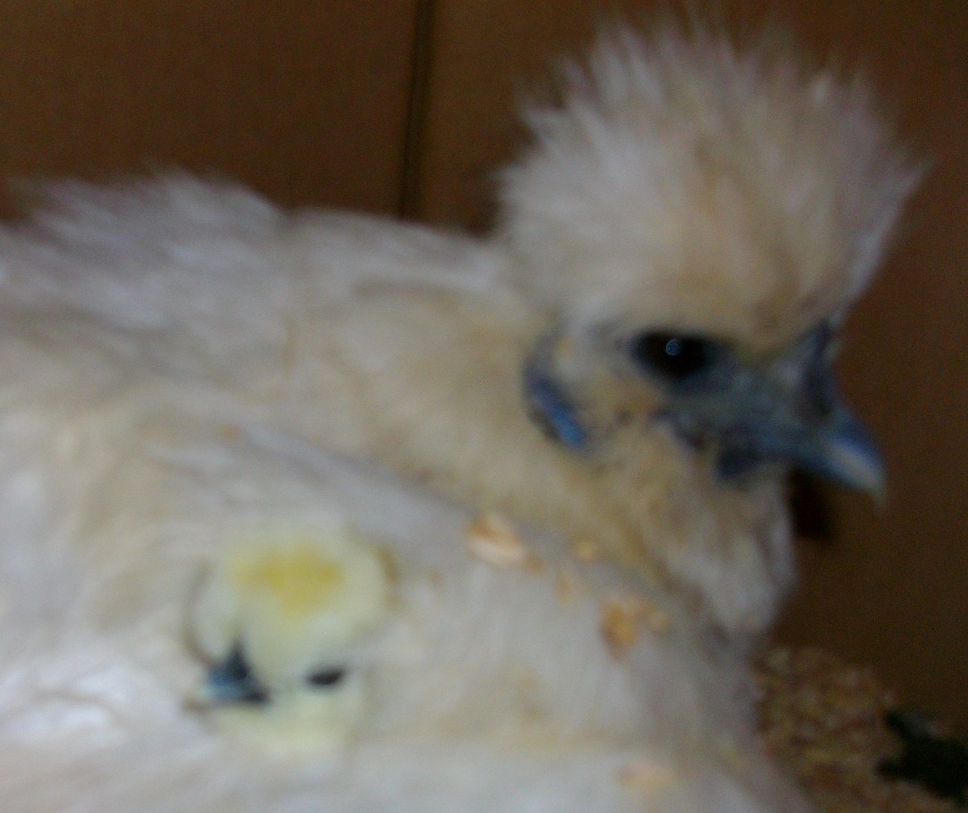 烏骨鶏さんは、今まで卵の上に覆いかぶさって、温め続けていたのですが、雛がかえりそうになったので、見守り体制に入ったようです。