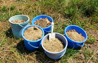 烏骨鶏さんも、有機堆肥を提供してくれます。人間さんがすることは、小屋の床に、もみ殻を撒いておけば、あとは出来上がった頃に回収するだけです。すると、烏骨鶏さん達は、もみ殻と糞と食べこぼしの餌(牡蠣殻入り)を足で蹴り混ぜてくれます。とても、きれいに混ぜてくれるので、ありがたいです。