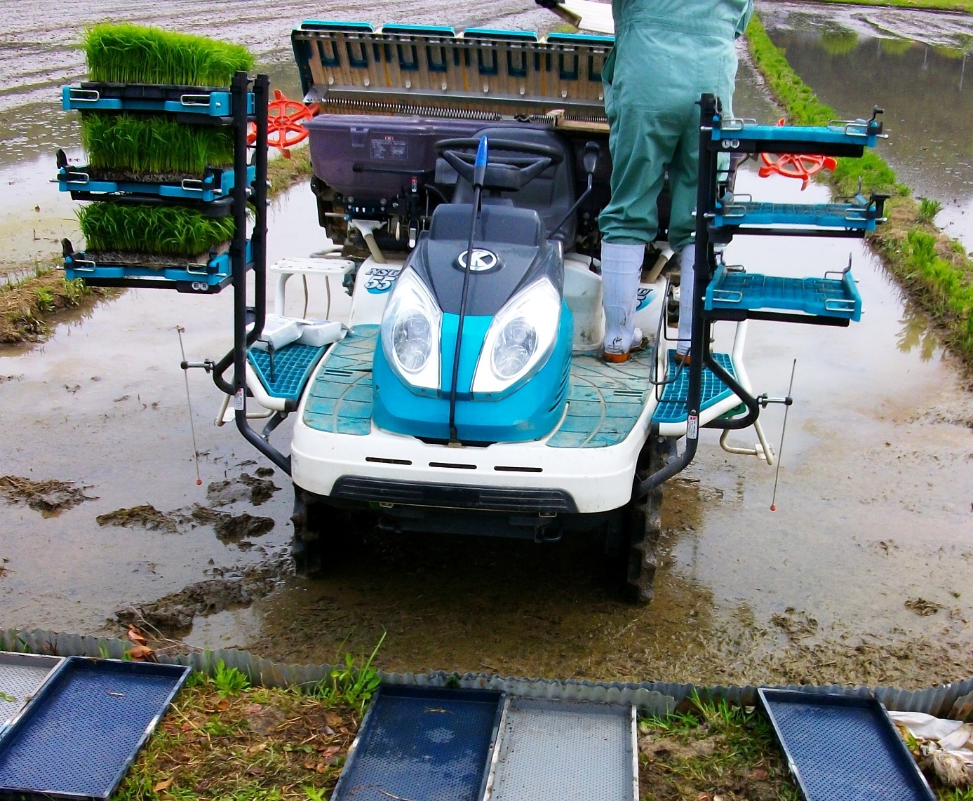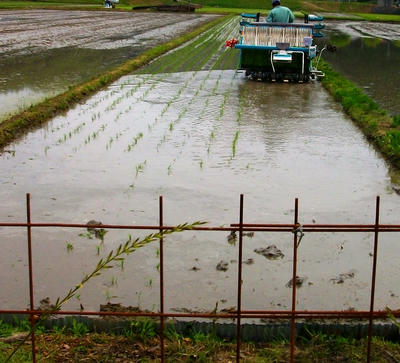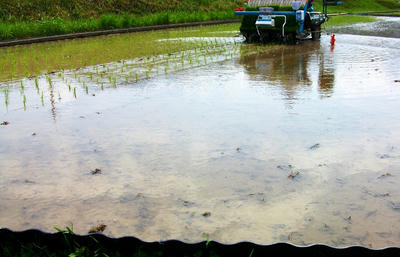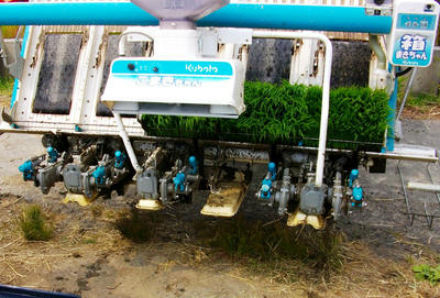 一部、田植えをしました。田植え機に、苗を10枚セットして、
