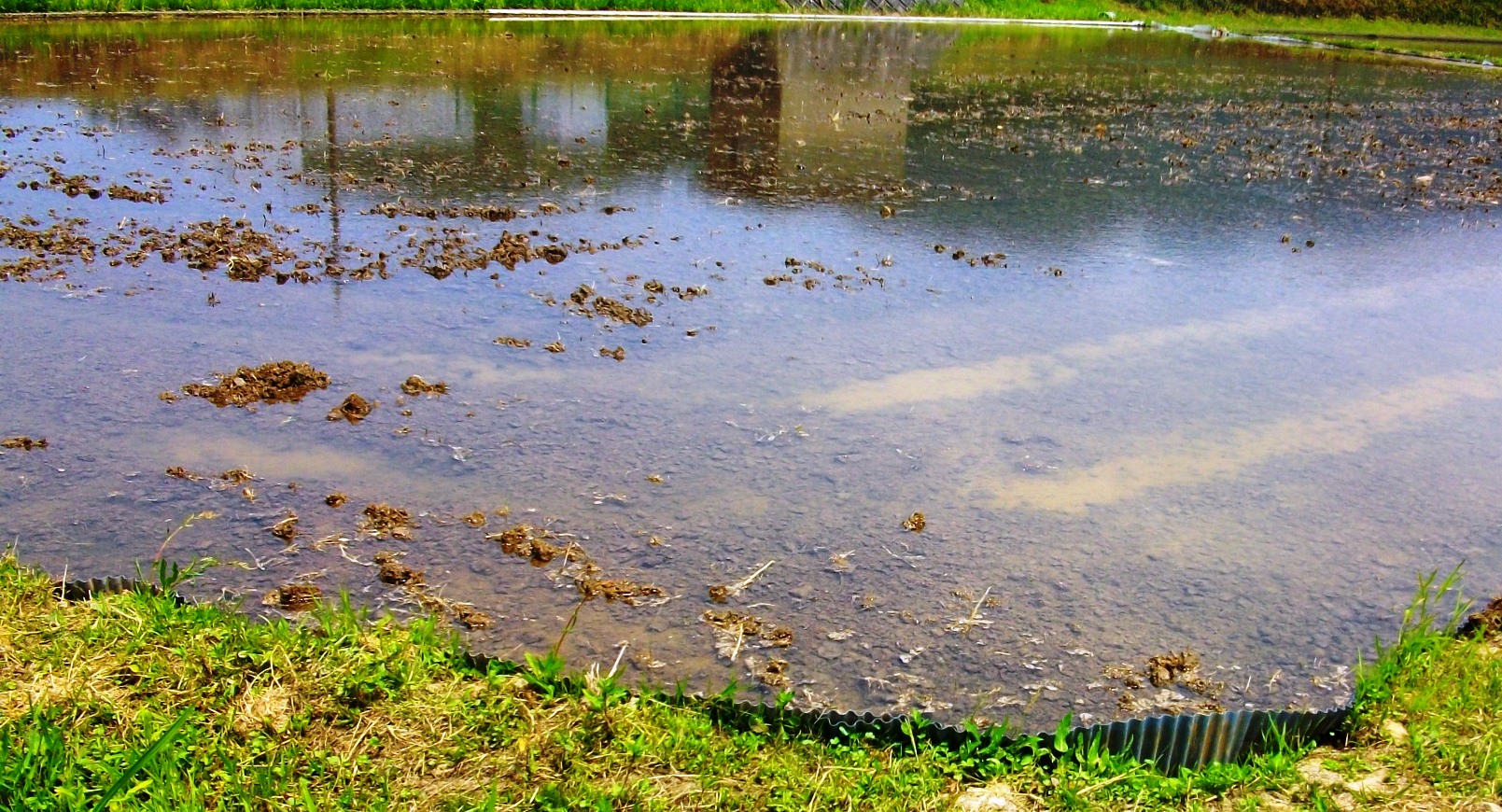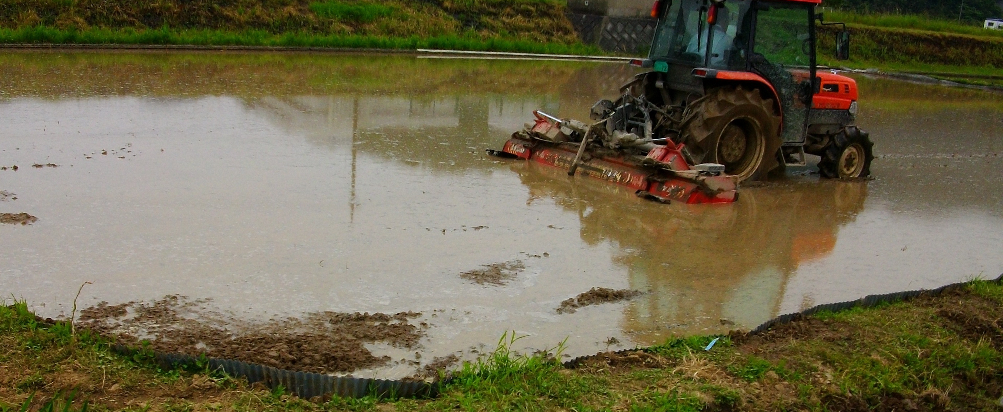 まだ田植えを済ませていない、もう一つの田んぼの代掻きをしました。代掻きをすると、田んぼが平らになって、きれいになります。こちらの田んぼも、田植えまであと少しです。