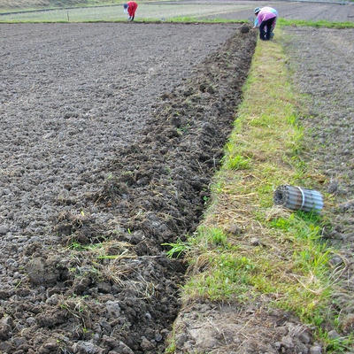 高級な畔シートを買いました。畔を抑える杭が要らず、トラクターが通らないところであれば、冬も付けたままでOKという耐久性のあるものです。しかし、値が張るのですよね。新しい品は、買従来品の倍以上の値段がします。今年は、新しい畔シートを10枚分(1200M)だけ、導入しました。 来年は、また少し、新しい畔シートを導入したいです。