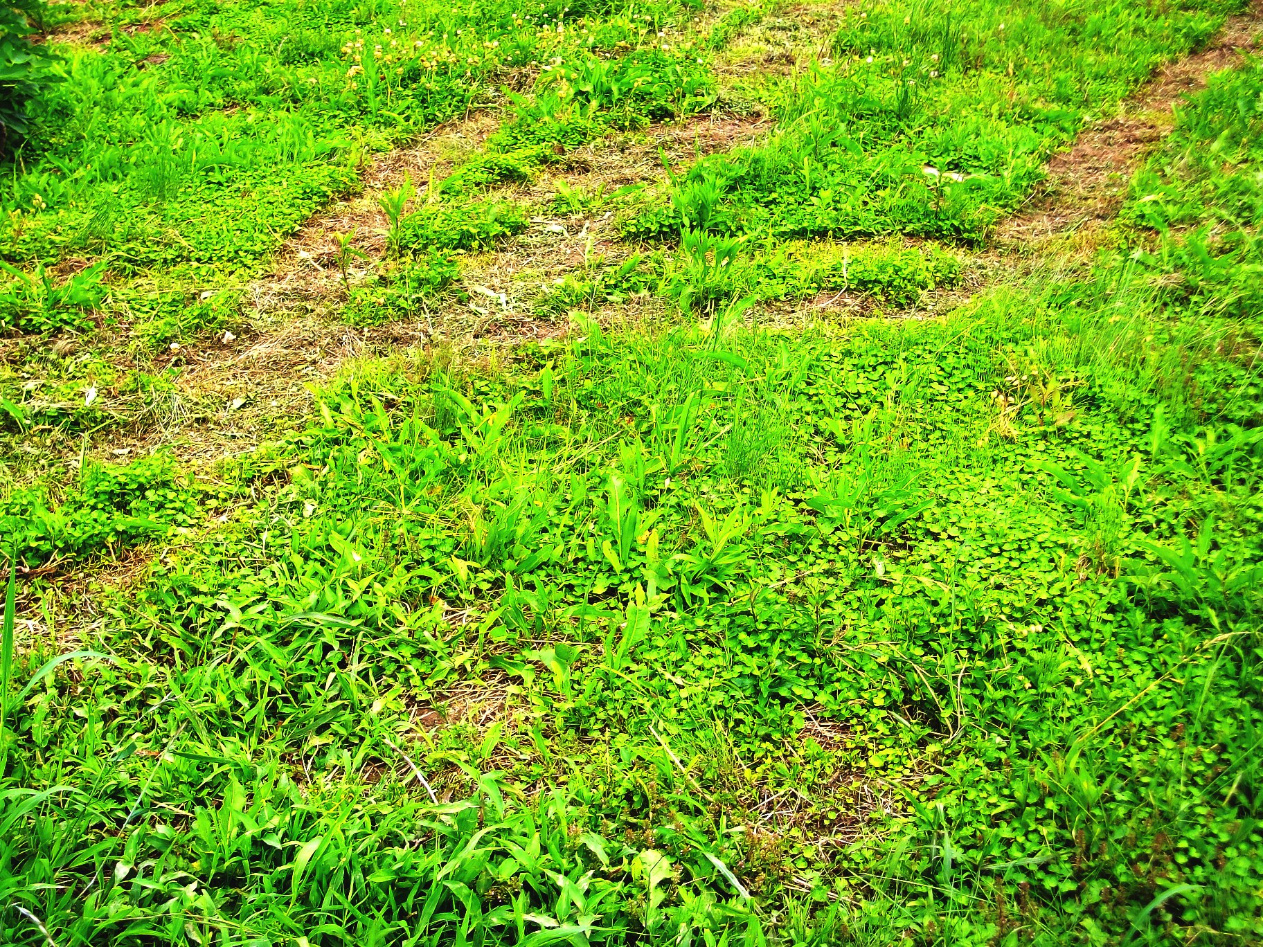 禿散らかしているところが、草刈り機の通った跡ですが、背の低い草しか刈れないみたいです・・・。こりゃ、お蔵入りですね、おそらく。