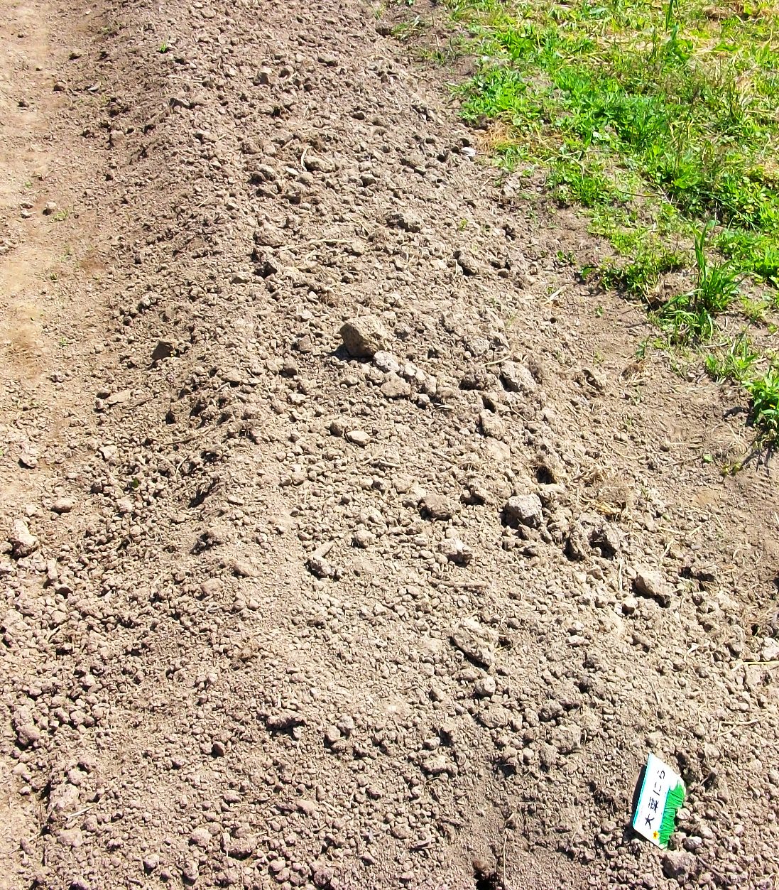 何の種を撒いたのか分かりやすいように、畝の横に種の袋を埋めました。