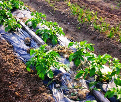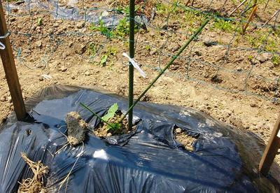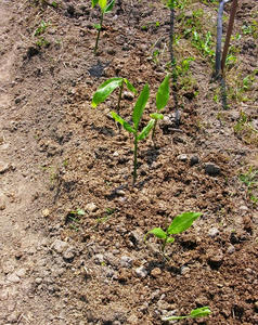 獣に食べられた、ジャガイモの跡地に、トウガラシとナスを植えました。今度は、食べられませんように。