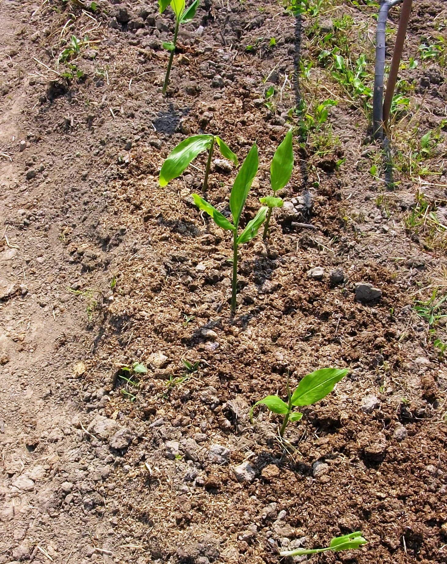 所々、種イモを植えたはずのところに、種イモがなくなっています。上の茎の部分だけになっているものがあります。ケモノの仕業に違いありません。モグラかしら?謎です。 ブログランキング・にほんブログ村へ