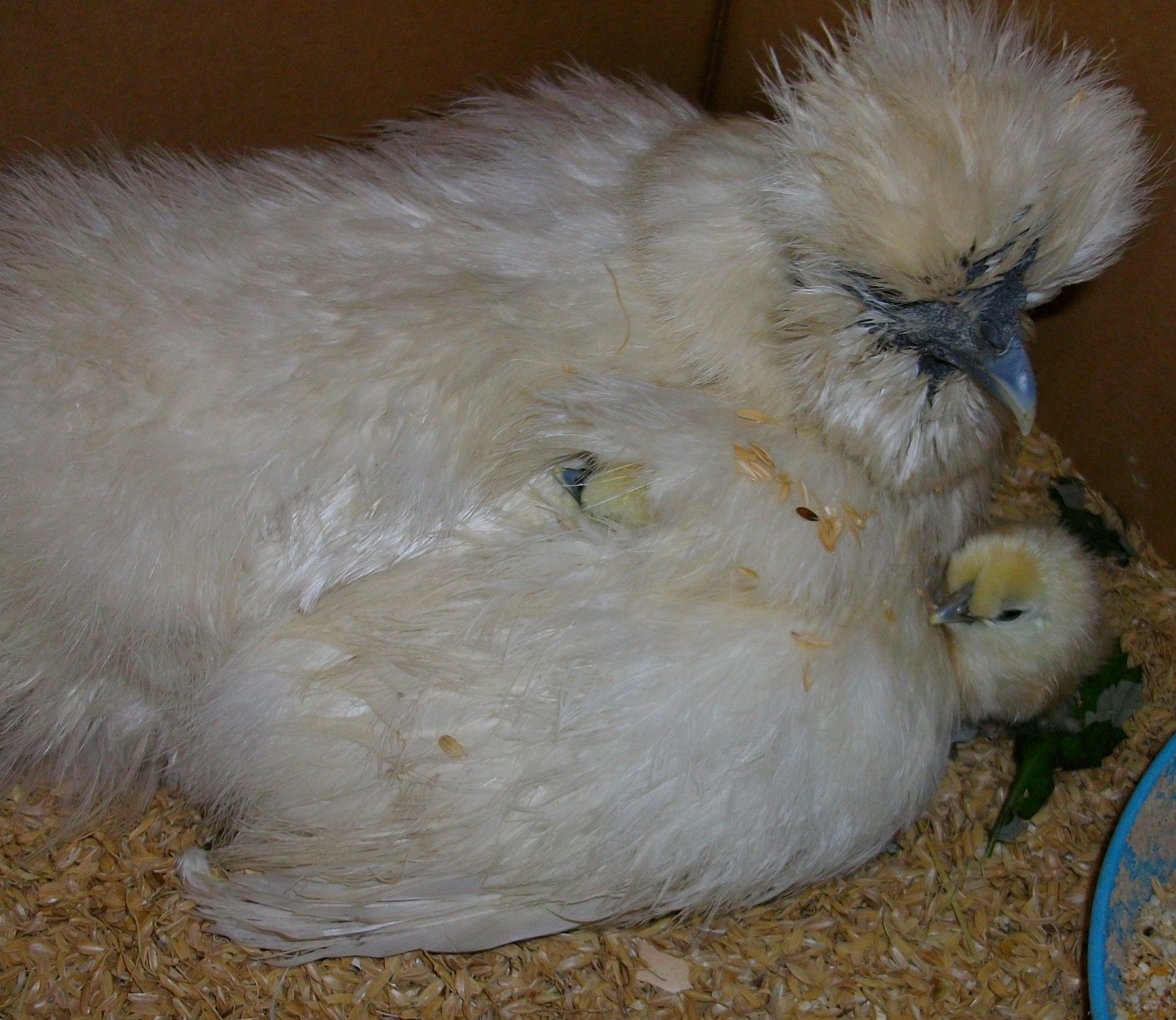 8個抱卵、7羽誕生、孵化直後1羽落命、1個温め放棄という結果になりました。2個分が孵化が遅く3、4日ほど抱卵し続けていましたが、あと1個を残し温め放棄しました。放棄した卵も孵化直前だったらしく、中から卵を割ろうと嘴型の割れ目が入っていました。元気に生まれた子だけでも元気に大きくなってほしいです。