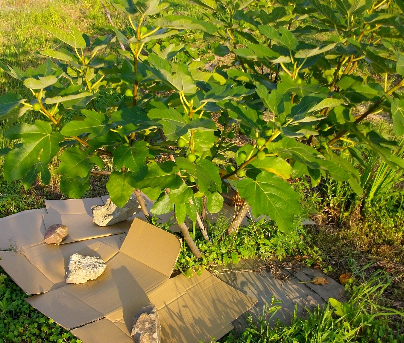 いちじくの樹形を枝を引っ張って、整えました。